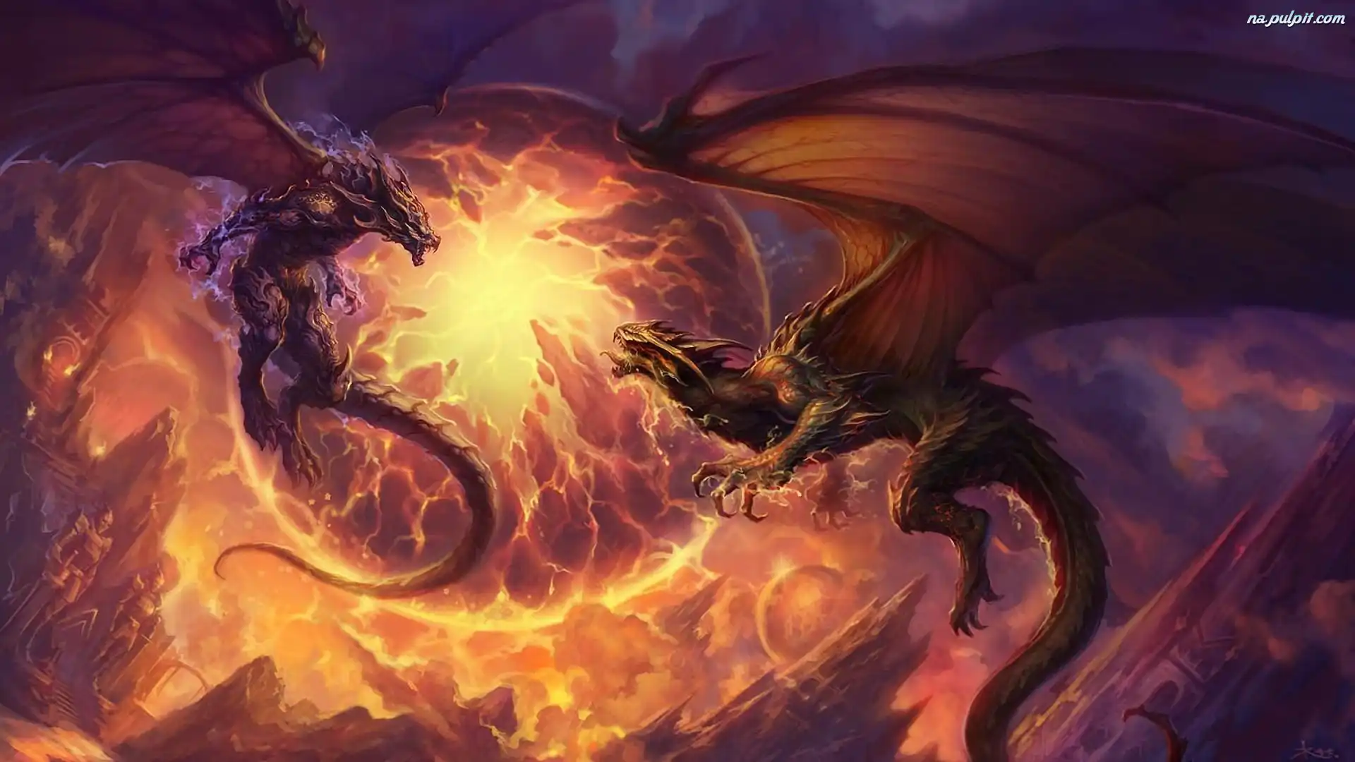 ~Ok, kto się odważy i sprawdzi jak głęboko w dupie się znaleźliśmy?-zapytałam z ironią. Nikt się nie ruszył. W wodzie, niczym w lustrze zobaczyliśmy odpowiedź. Wielgachny smok zniżał lot ku nam. Z drugiej strony nadlatywała gromadka jego dzieci. Odepchnęłam telekinezą Trai'a i Heliosa między drzewa. Szybkim ruchem dobyłam miecza i spojrzałam na potwora.